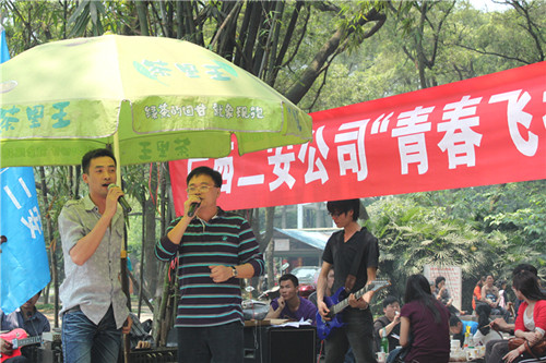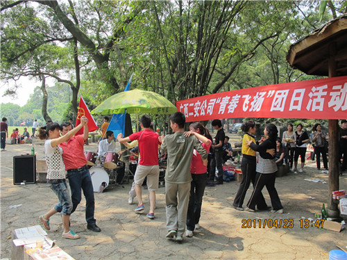 2011年4月23日,集团二安公司团委组织全公司各基层团支部在柳州市雀山公园举行了主题为“青春飞扬” 露天音乐会团日活动,迎接第92个“五四青年节”的到来。公司董事长、总经理、党委副书记黄鼎龙;公司党委书记、纪委书记、工会主席蓝锦俊;公司副总经理覃幼辙;公司副总经理、第三分公司经理莫雄清参加了此次活动。并为荣获集团公司一届二次职代会文艺晚会一等奖的演员及荣获公司2010年度“十佳青年岗位能手”颁发荣誉证书及奖金。活动集表彰、素质拓展训练、气排球比赛,文艺表演等于一体,形式新颖,精彩纷呈。团员青年们积极参与,各自表演自己的特长,唱歌、跳舞等节目层出不穷,活动现场气氛热烈,高潮迭起,展现出了二安青年员工朝气蓬勃、积极向上的精神面貌,吸引了不少围观者的眼球。此次活动的开展,增进了团员青年们的沟通交流,企业凝聚力进一步增强,更好地促进广大团员青年员工立足岗位,扎实工作,不断创新,充分发挥团员青年生力军作用,在公司建功立业过程中体现青年人的人生价值,为公司健康快速发展奉献青春力量!